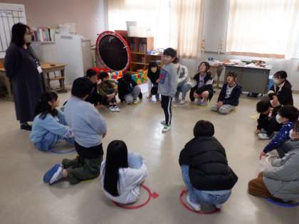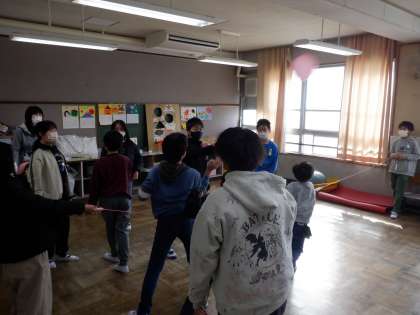 しらさぎ学級と交流会をおこないました。4つの教室に分かれ、一緒に遊んでいます。
