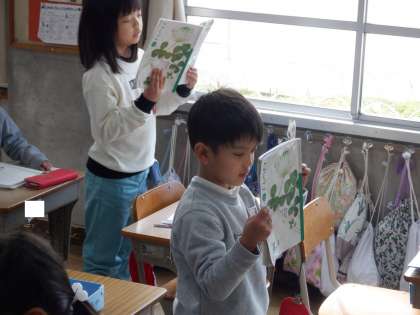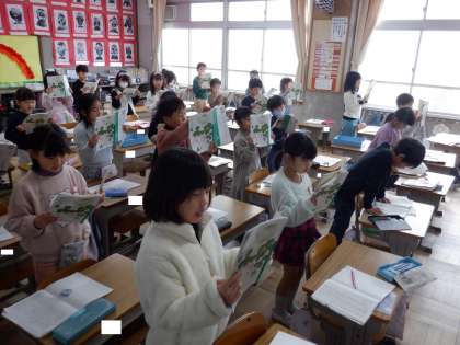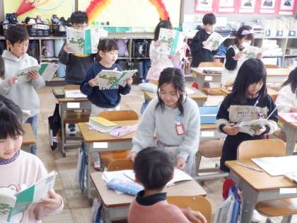 国語の授業の様子です。文章の内容について理解を深めるために音読をしています。