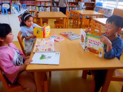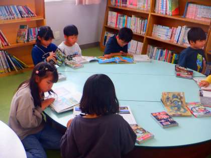 図書の時間の様子です。今日は、1学期はじめての図書の時間です。自分の好きな本を選び、夢中で読んでいます!!おめあての本はありましたか。