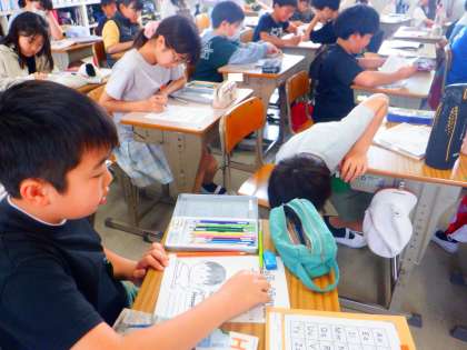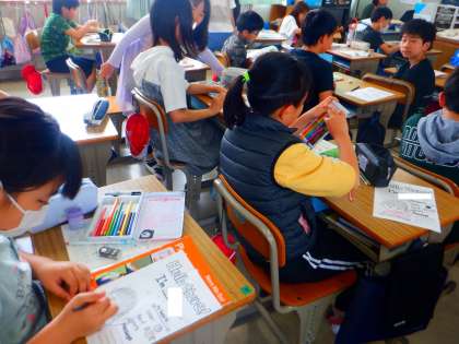 今日から5年生も外国語の授業がはじまりました。今日は、自己紹介カードを書きました。それを外国語で伝えることができましたか。