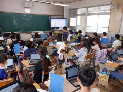 4月18日(木)4年生では、タブレットを使って授業を進めています。