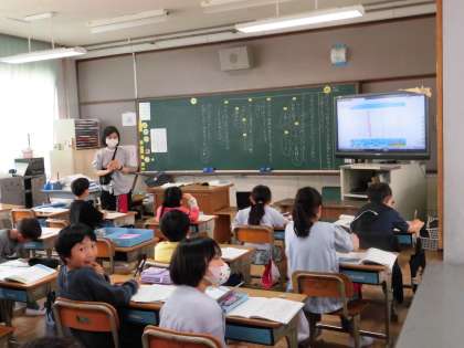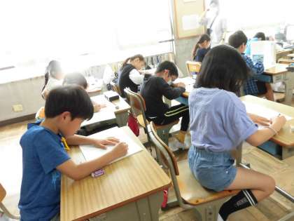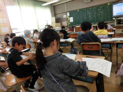 「春風をたどって」の学習を行っています。ちょうど、ふりかえりを書こうとしている場面です。ノートびっしりに書いている3年生、さすがです。