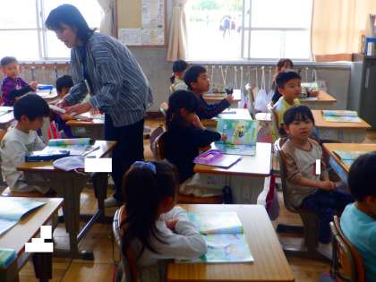 音楽の授業の様子です。今日は、音楽の本にのっている「どうぶつ」の歌を歌いました。みんなで「犬のおまわりさん」「こいのぼり」など元気いっぱいです!!