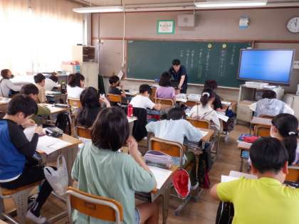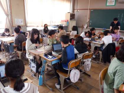 文中に登場する人物の相関図や登場人物の気持ちなどを考えました。途中グループになって意見を交換したり、タブレットを使ってグループの意見を交流したりしました。作者の意図するところがくみ取れたようです。