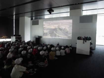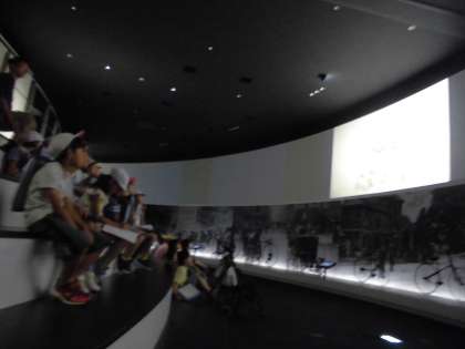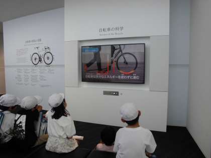 まず,館内の方から約束をきき,その後「堺市と自転車の関わり」や,「自転車の誕生」「自転車の不思議」などの動画をみんなで見たり,各チームで見たりして学習をしました。