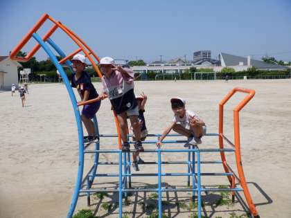 日差しもきつく気温も上がったせいか、グラウンドに出ている児童は以前より少なく感じます。それでも多くの児童が遊んでいます。楽しいけど、あまり無理はしないでくださいね。