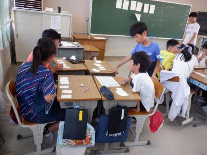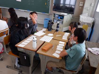 6年生はコミュニケーションをとる練習として簡単なゲームを行いました。