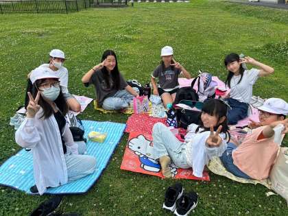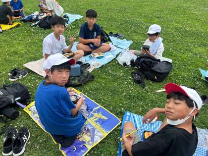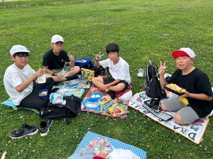 お弁当、お菓子を食べ終えると、芝生で元気よく鬼ごっこが始まりました。 本当に元気な学年です。