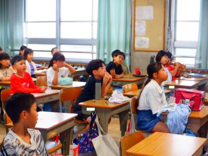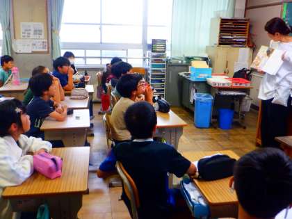 朝の学習の時間に、まほうのたまごさんによる読み聞かせをしていただきました。今日は『しらすどん』『あめふり』の2冊の本を紹介していただきました。今日の天気にぴったりの絵本で、みんな静かにお話を聞きました!!