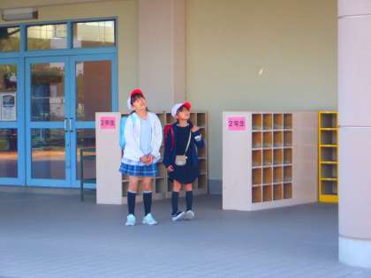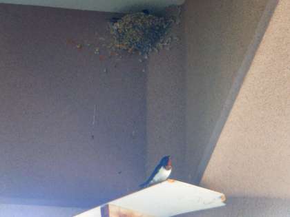 体育館の出入口に巣を作っているツバメが、朝から「ピチュ、ピチュ」と鳴いていました。「巣から出ているツバメをはじめて見たよ!!」と喜んでいました。