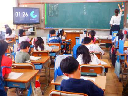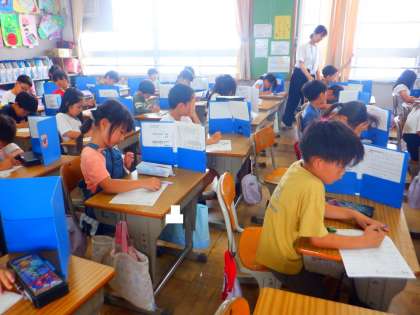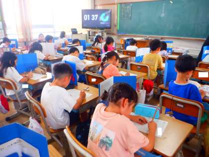 国語の授業の様子です。今日は、漢字のテストをしました。覚えた漢字を丁寧に書いていました。