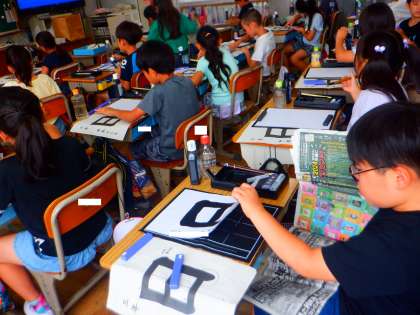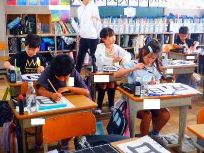 書写の授業の様子です。今日は、「日」を毛筆で書きました!1画目と2画目の長さを意識して、お手本を見てしっかり書くことができました!!最後の名前まで丁寧に書きました!!