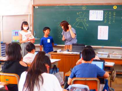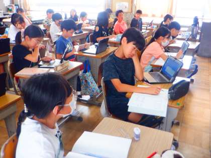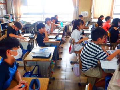 国語の授業の様子です。今日は、俳句づくりにチャレンジしました。書き表したいことをたをマップ図に書いたり、「5・7・5」の音にあてはめて作成したりするなど自分で作り方を選びました。完成させた俳句を紹介していました。