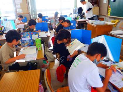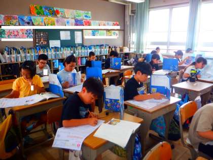 今日は、国語のテストをしていました。みんな本文をよく読み、問題を解いていました。解き終わっても、しっかり答えを見直していましたよ。1学期のまとめの時期ですね。