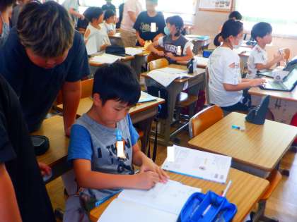 算数の授業の様子です。今日は、割り算の筆算の仕方を学びました。問題レベル6だそうです。みんなで解き方を、教え合い、確認しながら進めていましたよ!