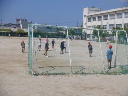 サッカーやドッジボール、なわとびや鉄棒などいろんなところで遊んでいます。元気よく過ごして次の授業に備えてください。水分補給も忘れずにしてください。