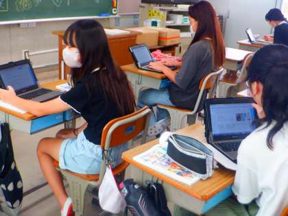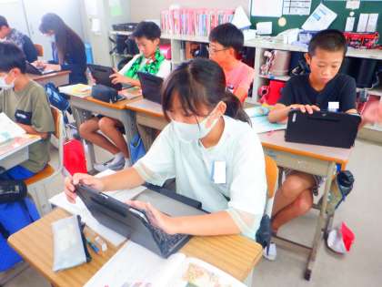 国語の授業の様子です。今日は、作者が作品に込めた思いについて考えました。「やまなし」の題名や構成、気になる言葉や表現、「クラムボン」という観点からそれぞれが選択しました。特に、「クラムボン」の正体について探っている児童が多かったようです。