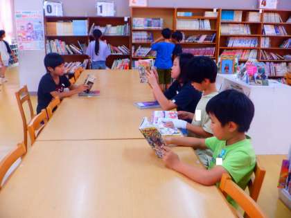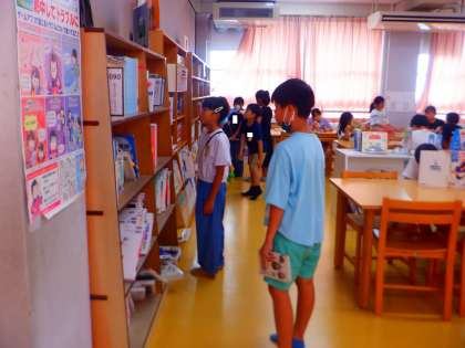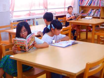 図書の時間の様子です。歴史の本やホラーの本などそれぞれが興味のある本を選び、集中して読書の時間を楽しみました。