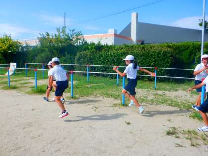 今日は、学年で連合運動会に向けた練習を行いました。各種目に分かれて練習しました。腿上げや記録、タイム計測したり、バトンパスの練習をしたりするなど、各チームのリーダーが中心をなって随時休憩しながら頑張りました。