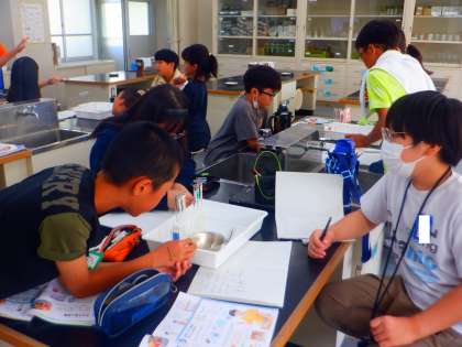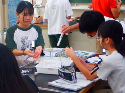 理科の授業の様子です。今日は、次回の実験のために実験道具を準備しました。試験官にラベルを貼ったり、金属片を丸めたりするなど分担して進めました。次回の実験が楽しみですね。