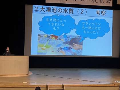 堺市内の学校から応募された11,680点の作品の中から45点が優秀賞に選ばれ、研究作品「〜私と大津池の三年間の歩み〜きれいな水ってどんな水?」を出品した本校の5年生児童もこの日表彰を受けました。その後、代表として研究発表をしました!!