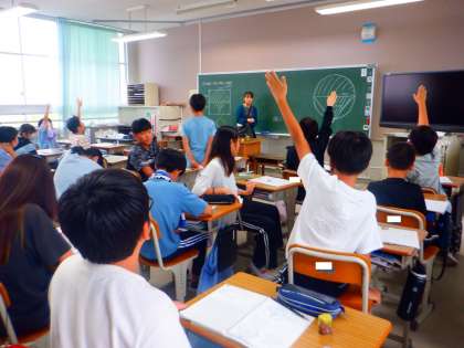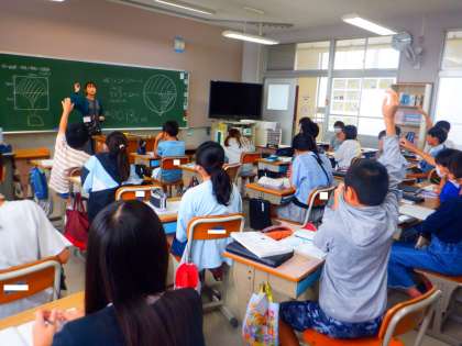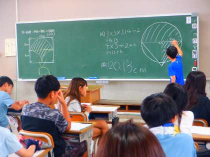 算数の授業の様子です。今日は、図形を組み合わせた面積を求めました。円や三角形の面積をあわせ求めました。その友だちの求めた考え方をしっかり説明することができました。次の面積の問題を楽しみにしているようでした。