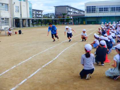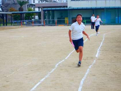 100m走では、下級生の間を走り抜け、6年生のスピード感が伝わりました。また、400mリレーでは、先生たちと対決しました。本番まで、あと10日です。さらに練習に力が入りそうです。頑張ってくださいね!!