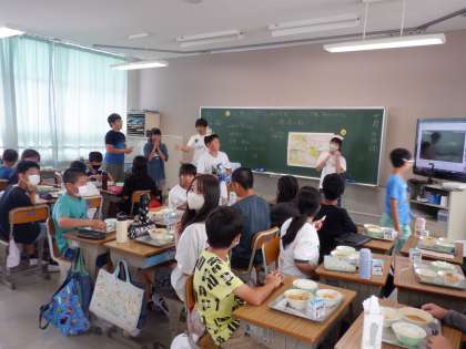 「いただきます」はもうすぐです。今日のメニューはカレーうどん、とても人気のメニューです。