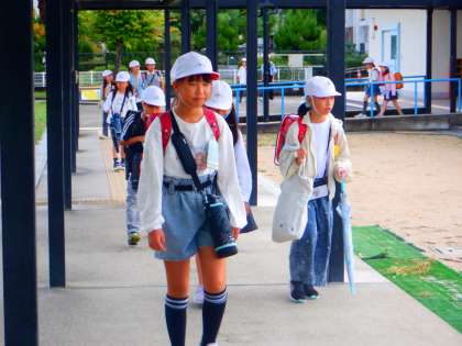今日は、曇っています。少し気温が下がり、過ごしやすくなるかもしれませんね。1年生の校外学習を実施します。