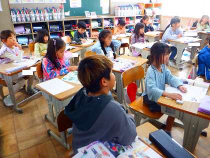 生活科の授業の様子です。みんながお手伝いしている時や弟さんや妹さんと遊んでいる時にお家に方がニコニコと笑ってくださるそうです。これから家族の一員としてお家の方のお仕事を様子をみて、頑張ってくださいね。