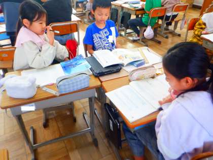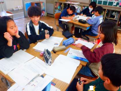 国語の授業の様子です。今日は、短歌を楽しみました。短歌を声に出し、お気に入りの短歌を選びました。秋や冬の季節を詠んだ短歌を選んでいました。「静かな感じがいい。」「落ち着くから。」などの理由を教えてくれました。