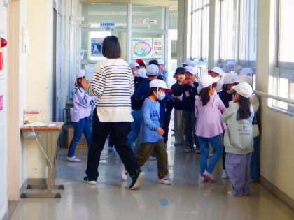 避難訓練を実施しました。今日は、地震時の避難と火災を想定して行いました。地震時は、放送後、すぐに机の下に頭をしっかり隠していました。また、火災の発生後の放送後もすぐに廊下に並び「お・は・し・も」を守り避難しました。とっても素晴らしいです!!
