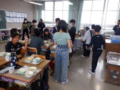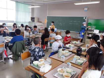 6年生の給食準備の様子です。