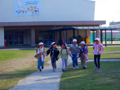 さようなら。気温が下がっています。体調を崩さないようにしてくださいね。明日は、なかよし会があります。2年生が町たんけんを予定しています。