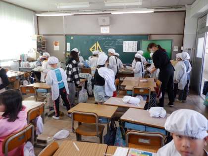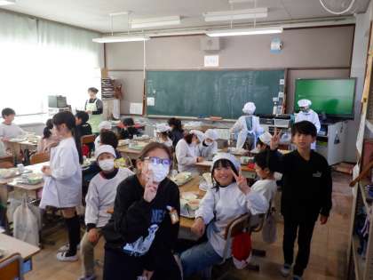 係の児童がてきぱきと動き、手際よく配膳していきます。ご苦労様です。この後いただきますをしました。今日もおいしい給食ありがとうございます。