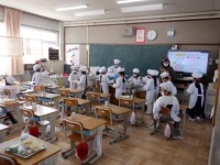 1年生 給食の準備の様子です。