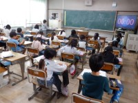 算数と書写の様子です。算数の時間では,かけ算の答えが書かれたカードをできるだけ早...