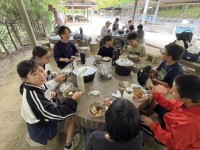 夕食の様子です。おかわりをしている児童も多く、美味しくいただきました。