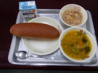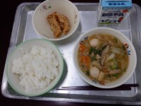 今日の給食です。 八宝菜、揚げギョーザ、ごはん、牛乳です。今日は中華メニューで...