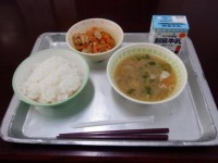 今日の給食です。 チャージャン豆腐、ごぼうサラダ、マヨごまドレッシング、ごはん...