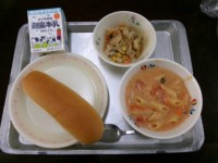 11月10日(月)の給食です。 ミネストローネ、ツナとポテトのマヨネーズ風味焼...