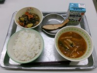 11月20日(木)の給食です。 ほうとう、ひじきの甘煮、小魚の佃煮、ごはん、牛...