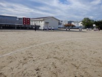 かけ足訓練です。今日は1、2年生です。 しっかりと準備体操をした後、走り始めま...