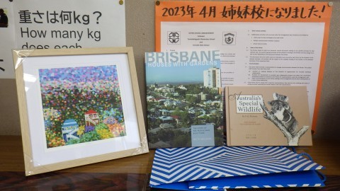 アイアンサイド小学校よりプレゼントをもらいました。学校からも,堺の御線香と150周年記念式典グッズをプレゼントしました。いただいたブリスベンの本やアートを大切にしていきます。ありがとうございます。