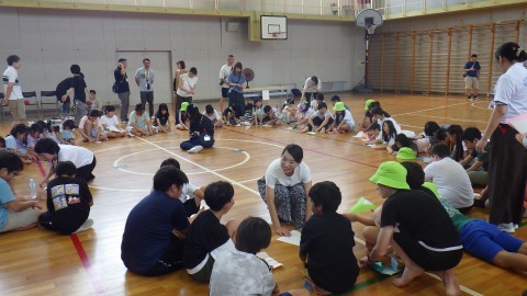 みんなで昔遊び(紙風船…案外人気!,けん玉,お手玉,折り紙)や紙飛行機飛ばしなどをして遊びました。夜にはお別れイベントもありました。