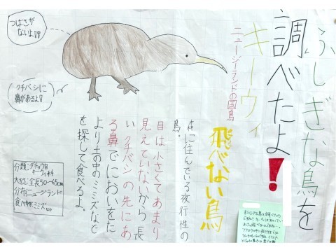 自分が興味をもった鳥を調べました。イラストや思いを書きこんで,自分の疑問をどんどんと追究していました。4年生で初めてのことだと思いますが,しっかりと準備し堂々と発表していました。