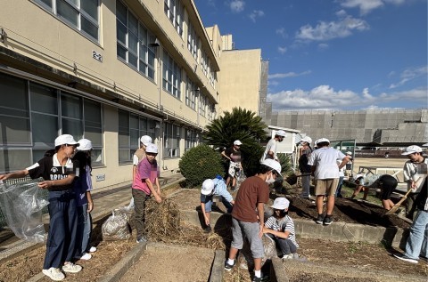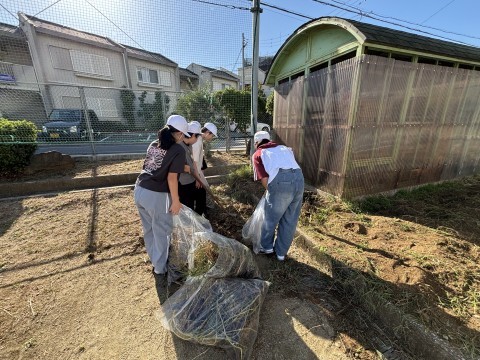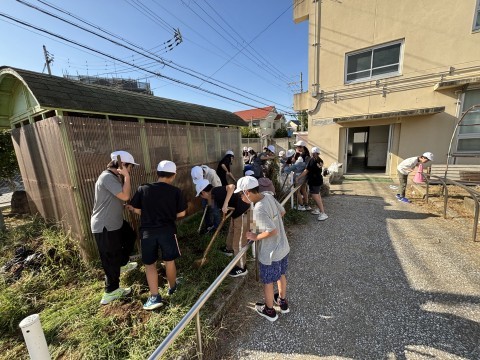 もっと土地を増やして,野菜を育てたいと,みんなで力を合わせて開墾です。