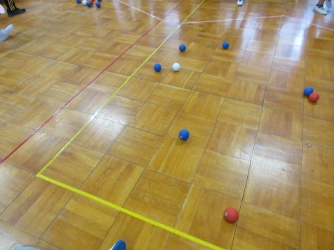令和7年10月3日(金)ボッチャを3年生に教えてあげるチャレンジに取り組みました!