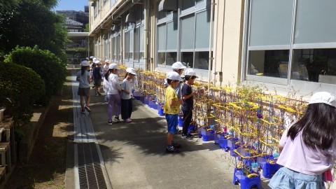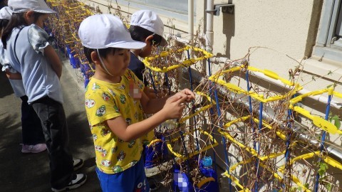 たねがどこにあるのか一生懸命探していました。これからアサガオのつるで6年生とリースを作る予定です。