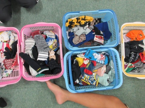 11月のカレンダーのテーマは「芸術の秋」です。お家で不要になった靴下をおうちの人や職員にたくさん寄付していただきました。靴下の寄付のご協力本当にありがとうございました!!寄付していただいた靴下を使って,自分だけのキャラクター作りをします。